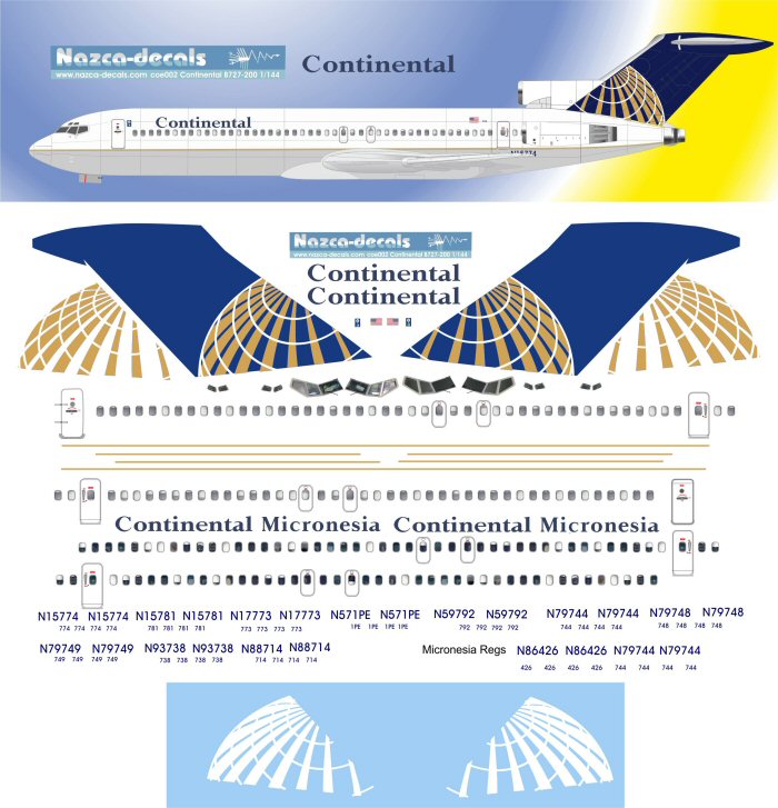 the Continental B727-200 with extra “micronesia” title and full regular and photo real windows with different registrations and additional white parts if you prefer to paint the tail