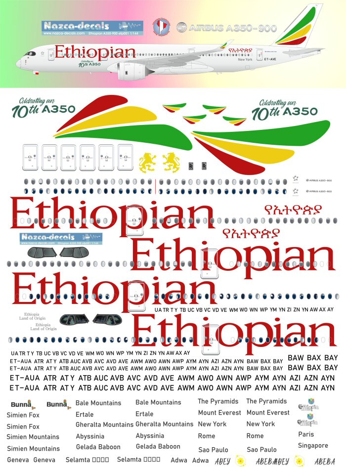 Ethiopian A350 with all Markings and special stickers and Registrations with additional photo real windows