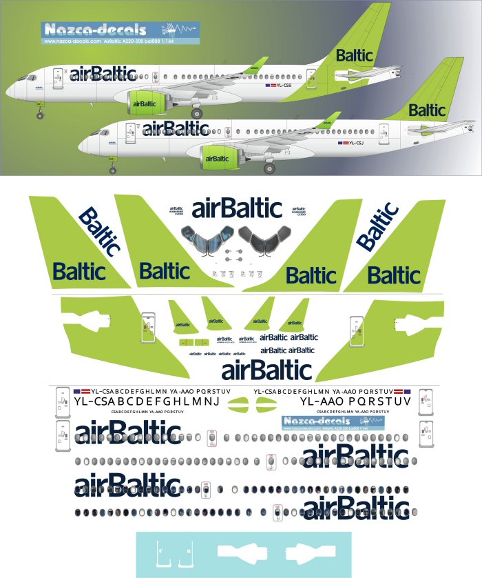 Air Baltic new A220 in both liveries “new and old” with accurate data and white parts