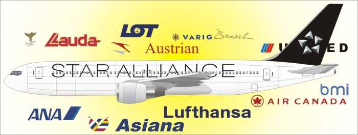 The starAlliance B767-300 saga, with optional company logos, two different window and door configuration and markings data for every single aircraft . choice to built two of ten aircraft available