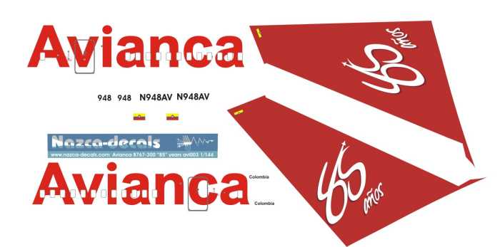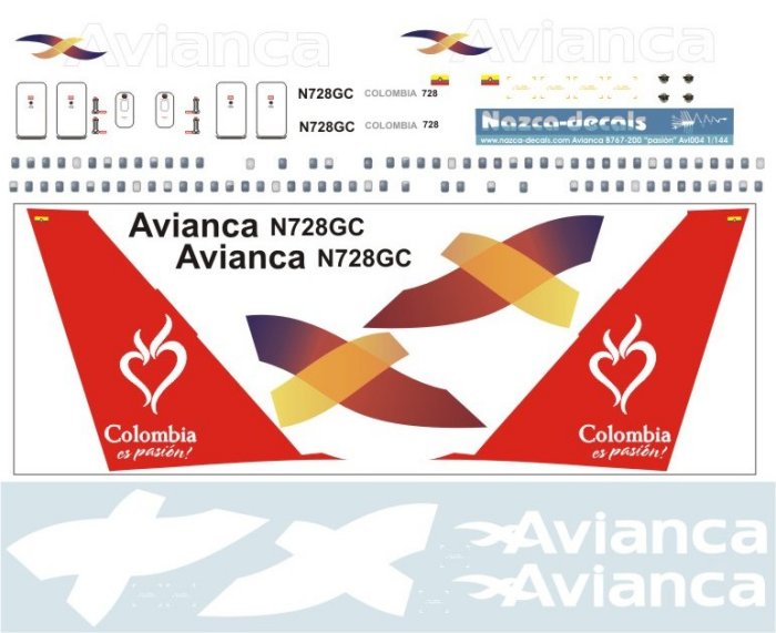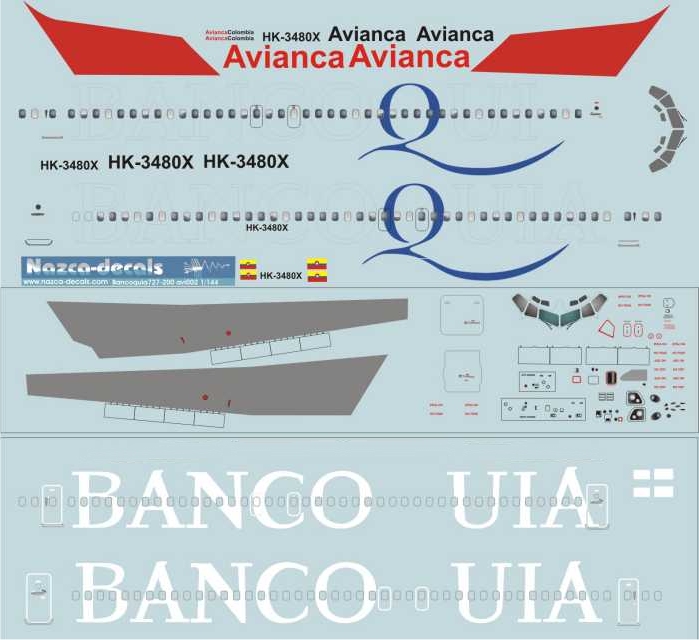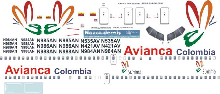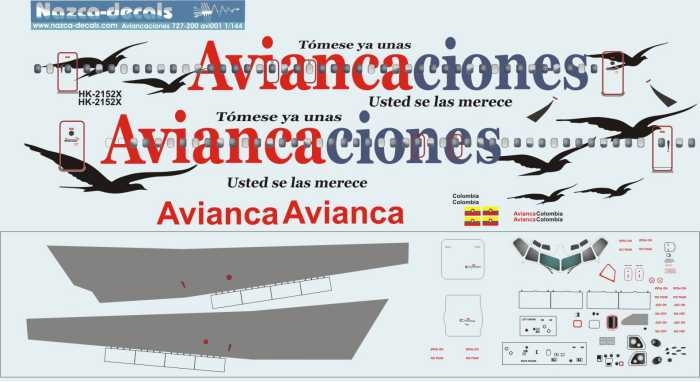 The two fantastic avianca schemes incluse the complete logo art of “aviancacionesâ” or “Bancoquia” to complete your favorite aircraft model kit in these very nice scheme , forward cockpit windows are also included in this set. note you will need to use the provided decal windows to complete this model accurate
