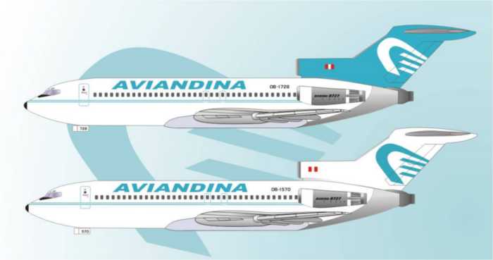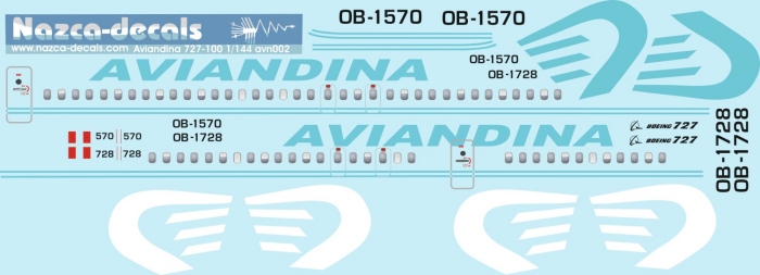 Aviandina 727-100 set includes the necessary decals to built one of the two versions used by the company´s 727