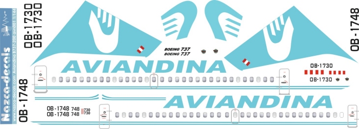 Aviandina 737-200 set includes the necessary decals to built one of the two versions used by the company´s 737