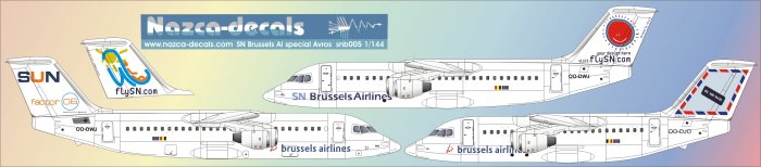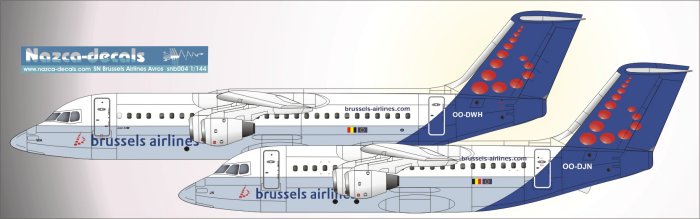 The the SN brussels airlines “publicity-Avros”, the set provide all four logos and necessary detail to complete two aircraft, one RJ-100 and one RJ-85 with all four logo options