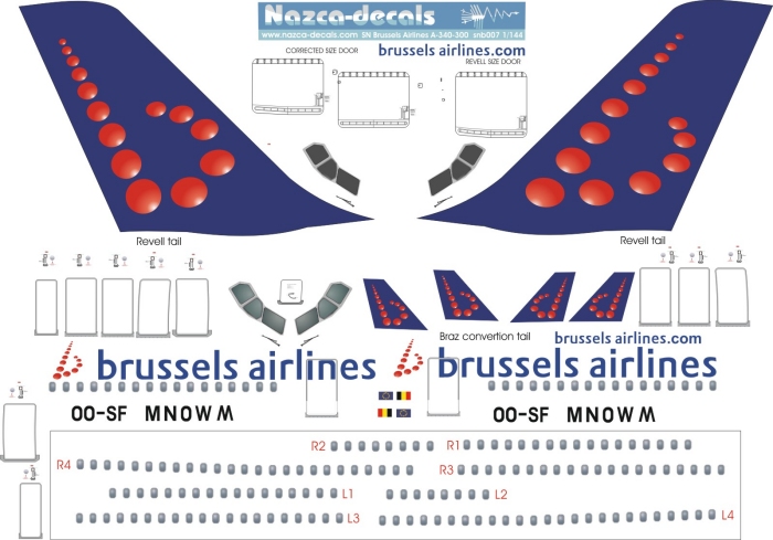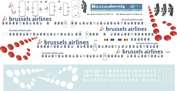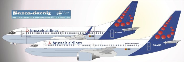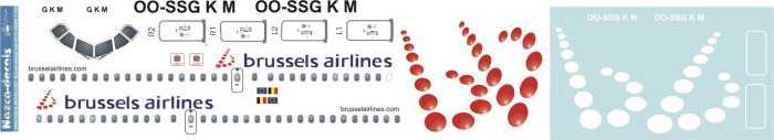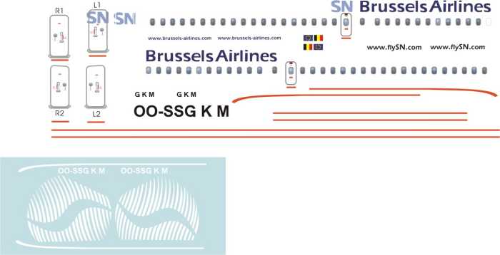 SN brussel ailines has been renamed to “Brussels Airlines” and show a new scheme with three dimensional finish logo art, the decals offers also white undergrounds to avoid transparency.