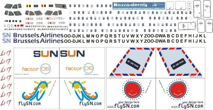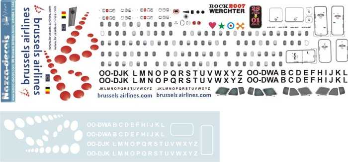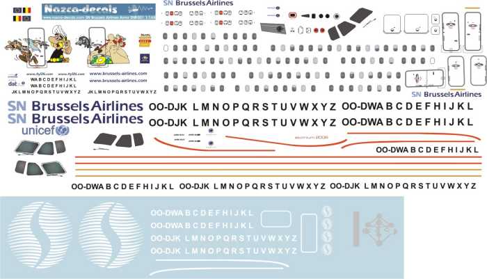 The Airline after Sabena,The new belgian national airline “SN Brussel Airlines”, initially two sets new in the catalogue, The Avros collection including complete registrations and “all” special markings used by these aircraft with the necessary decals to build one of the company´s RJ100 or RJ85, and the Airbus A-319, both sets include white parts for tail logo, underground and registrations.