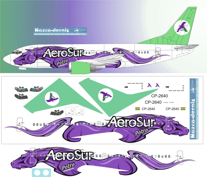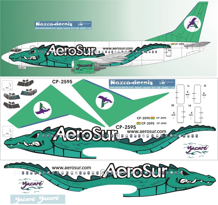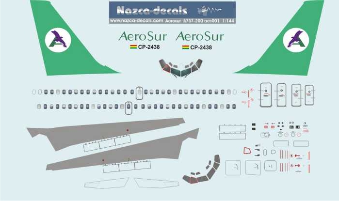 The AeroSur B737-200 with complete tail art including and textured windows, aluminium metal parts for windows and complete detail set are also included.