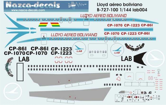 lab004 Boeing 727-100 initial colors with two tail logo options scale 1/144 € 12.00
