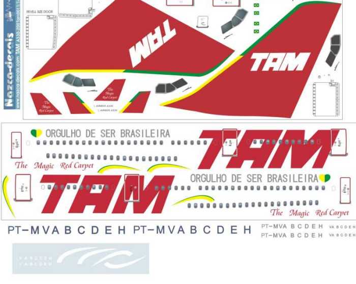 The first set for the Brazilean Low cost carrier “TAM”, the sets provide the necessary parts to complete a A330-200 out of the Revell A330 or A340 -300 series, complete new sets of windows and doors included and an enlarged tail art for the “BRAZ PARTS” convertion