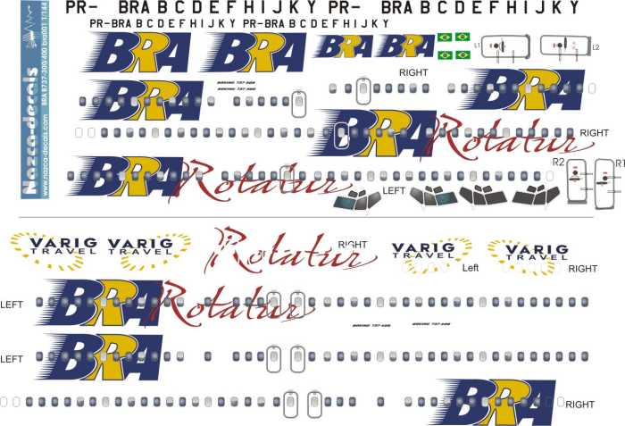 another brasilean regional, BRA ( Brasil Rodo Aereo), the two sets covers all the posible variants used by all the company aircraft with convination of different markings and stickers.