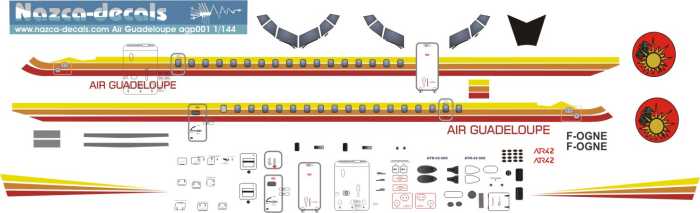 agp001 Air Guadeloupe ATR-42-200 initial scheme with full detail data scale 1/144 € 8.00