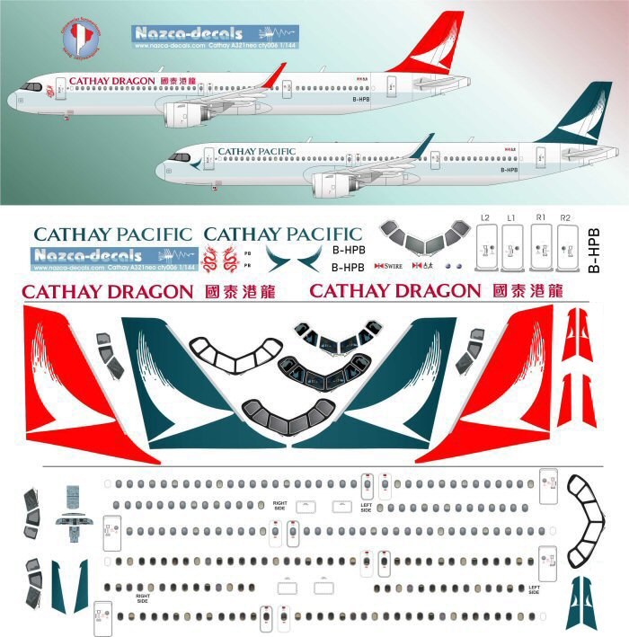 the new Add to the cathay fleet, the A321neo intwi different liveries, in the new company colors and in the colors of Cathay Dragon with optional white parts and full option of windows