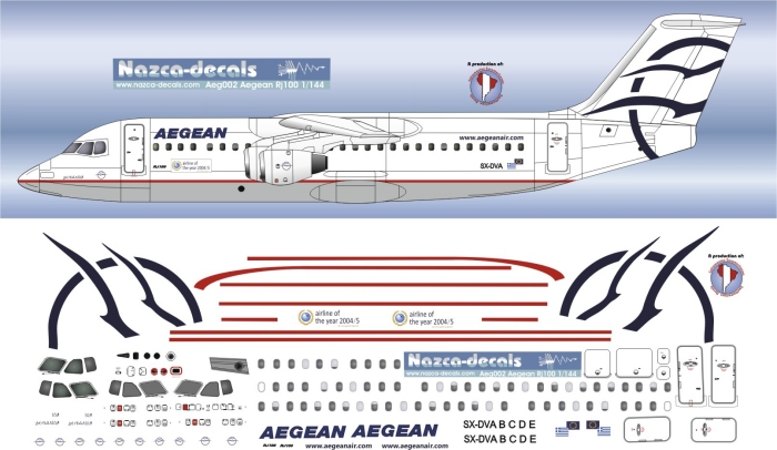 aeg002 Aegean Bae 146-300/ RJ100 with special logos scale 1/144 € 12.00