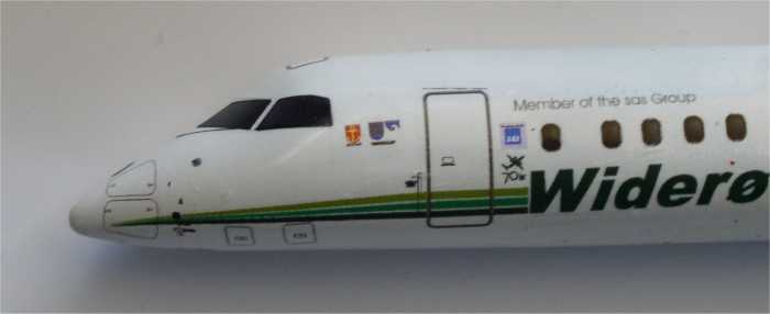 A close up from the the nose section, note the logo detail including heraldic shields of the conrresponding city name used by the aircraft, as well as the 70 years logo and SAS